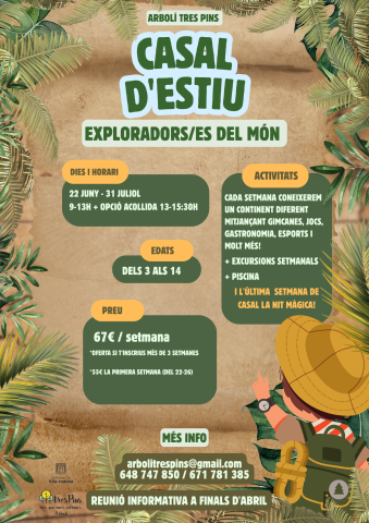 Des del 28 d’abril fins el 14 de juny , estaran obertes les inscripcions al Casal d'Estiu 2026. Un cop passada aquesta data només s’admetran infant si no varien la ràtio de monitors/es. Per més informació de la reunió prem AQUÍ Per accedir al formulari d’inscripció prem AQUÍ