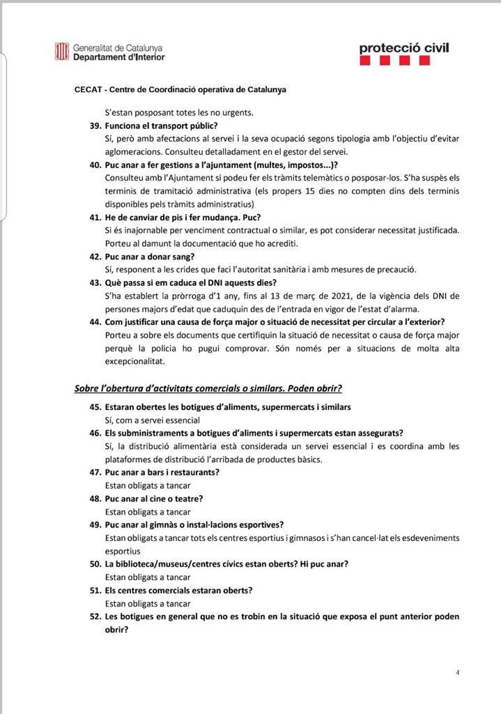 Protecció Civil ha actualitat el FAQ's sobre les mesures de restricció a causa del coronavirus.